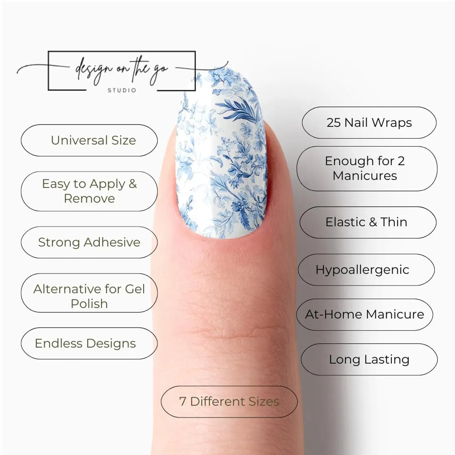 Transform your nails effortlessly with our nail wraps, the perfect alternative to gel polish. They fit every nail with their universal size. Their thin, elastic material ensures a comfortable, natural feel, while the strong adhesive makes application and removal quick and hassle-free. Enjoy long-lasting, stunning nails and endless design possibilities—upgrade your manicure routine today!