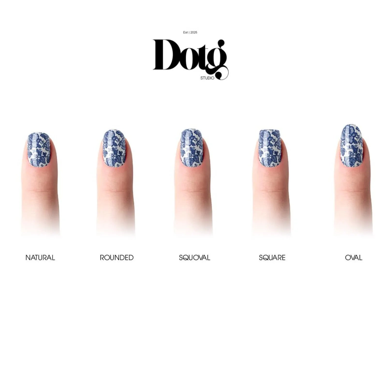 • These Blue Lace Floral Nail Wraps are inspired by classic French lace textiles, echoing the elegance of couture garments and heirloom embroidery.