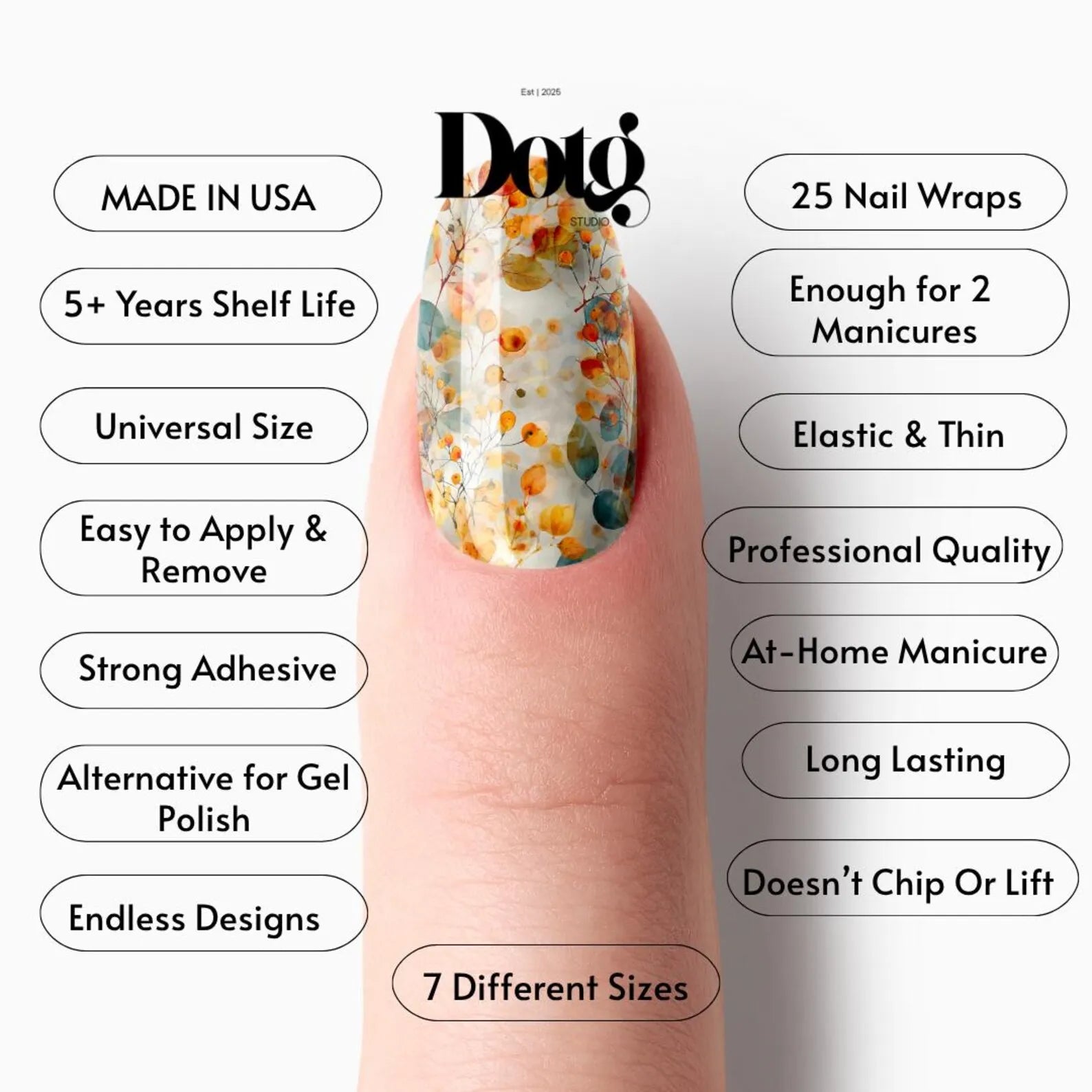• Ultra-thin and flexible — conforms seamlessly to the nail for a smooth, salon-like finish.