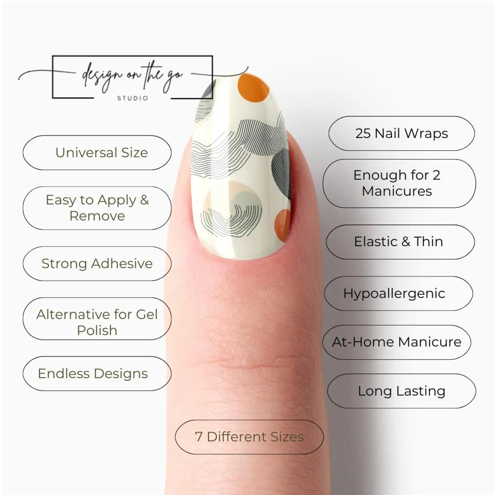 Transform your nails effortlessly with our nail wraps, the perfect alternative to gel polish. They fit every nail with their universal size. Their thin, elastic material ensures a comfortable, natural feel, while the strong adhesive makes application and removal quick and hassle-free. Enjoy long-lasting, stunning nails and endless design possibilities—upgrade your manicure routine today!