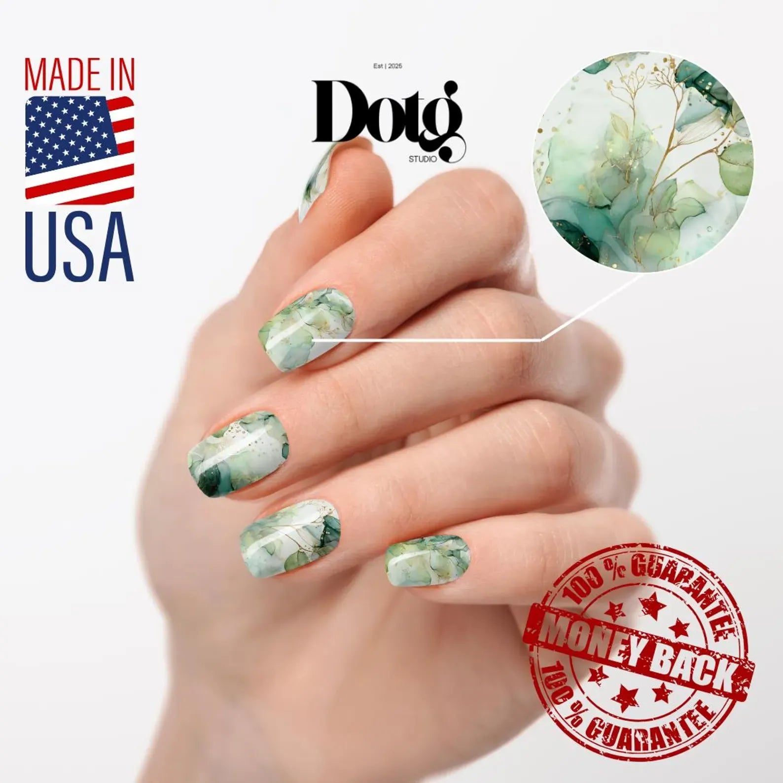 • Whisper-soft watercolor washes of emerald, sage, and seafoam — layered with golden botanical lines for a look of pure serenity.