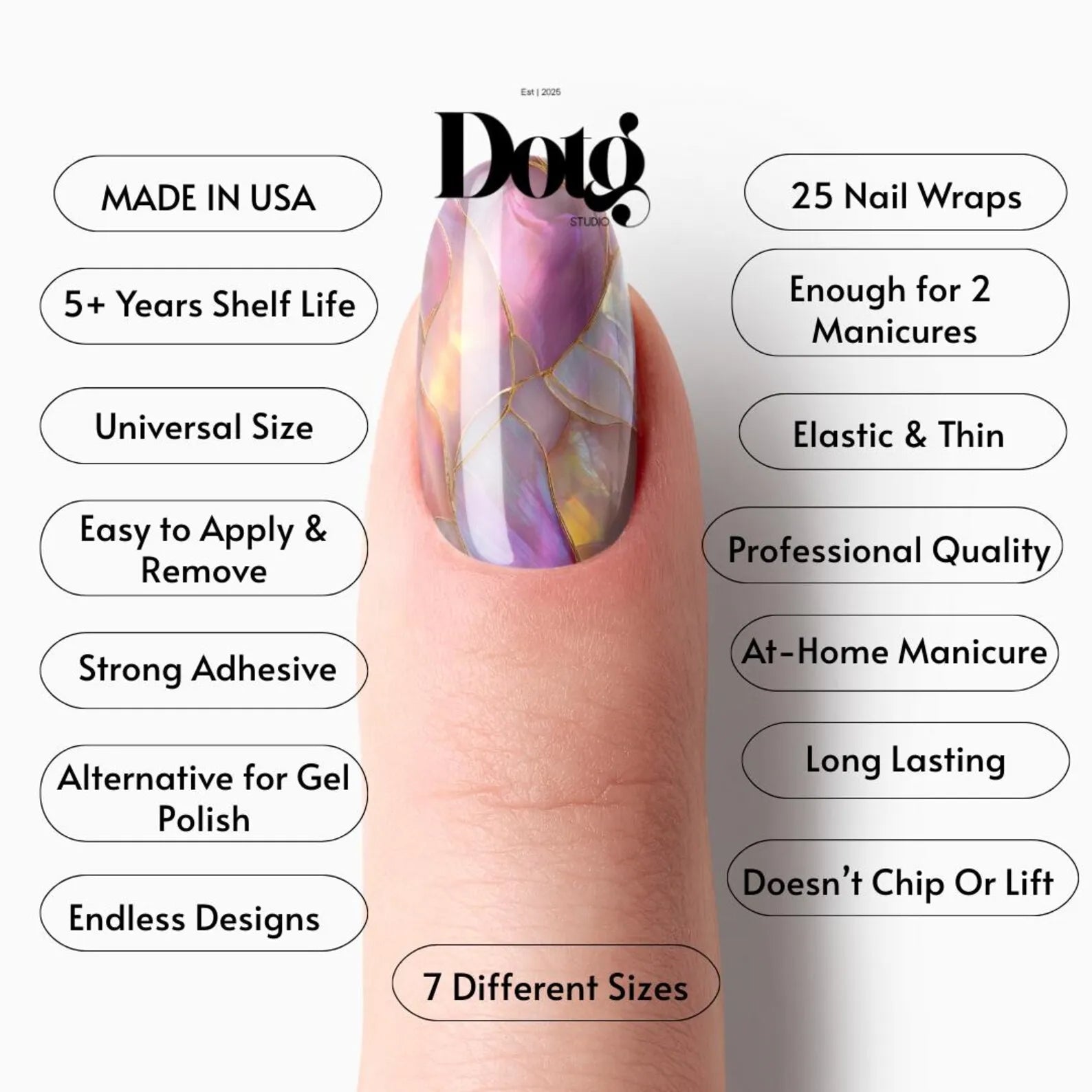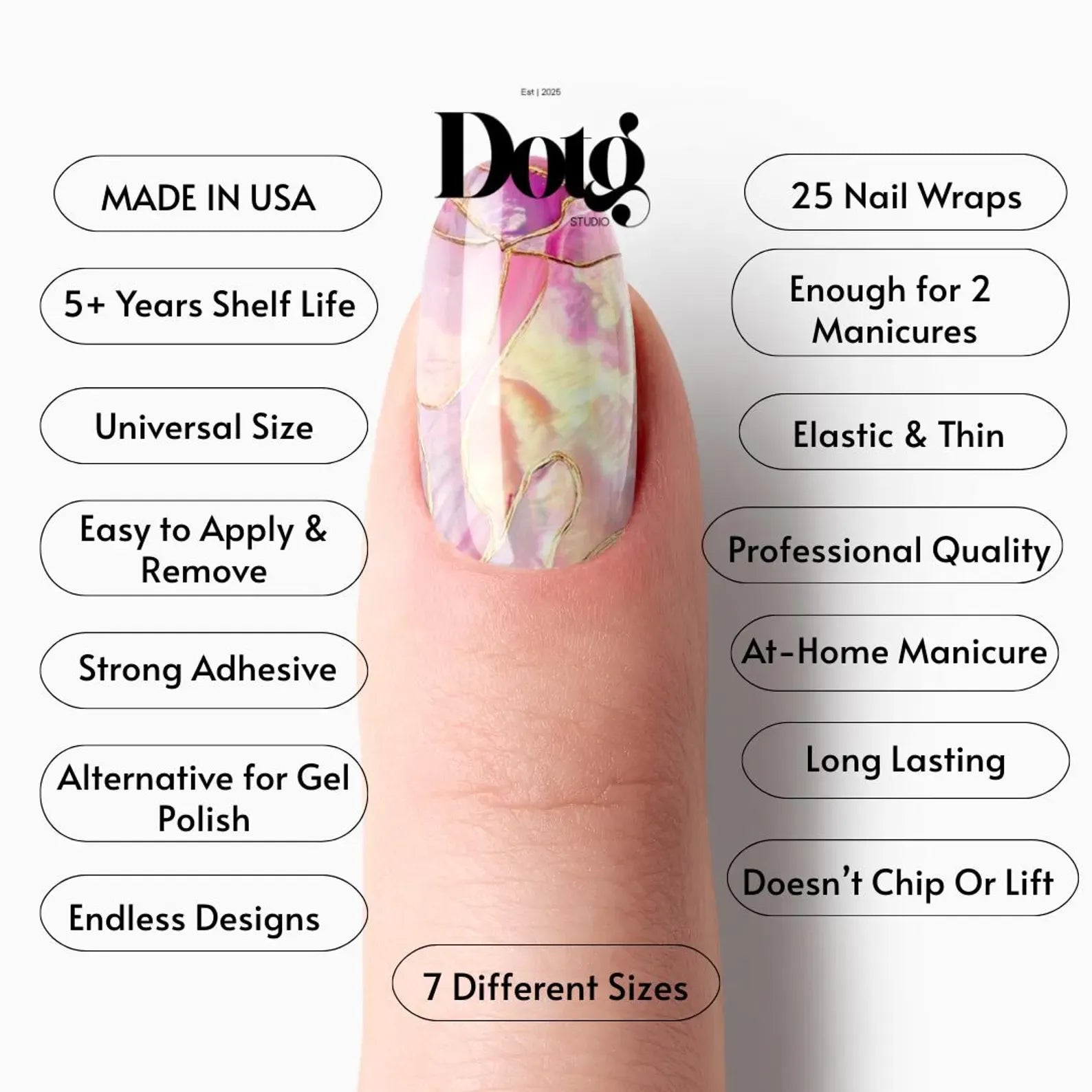 ✎ Note: Nail wraps can be applied over regular base polish, gel base, gel, or polygel after buffing. Always soak wraps to remove — never peel — to protect your natural nails.