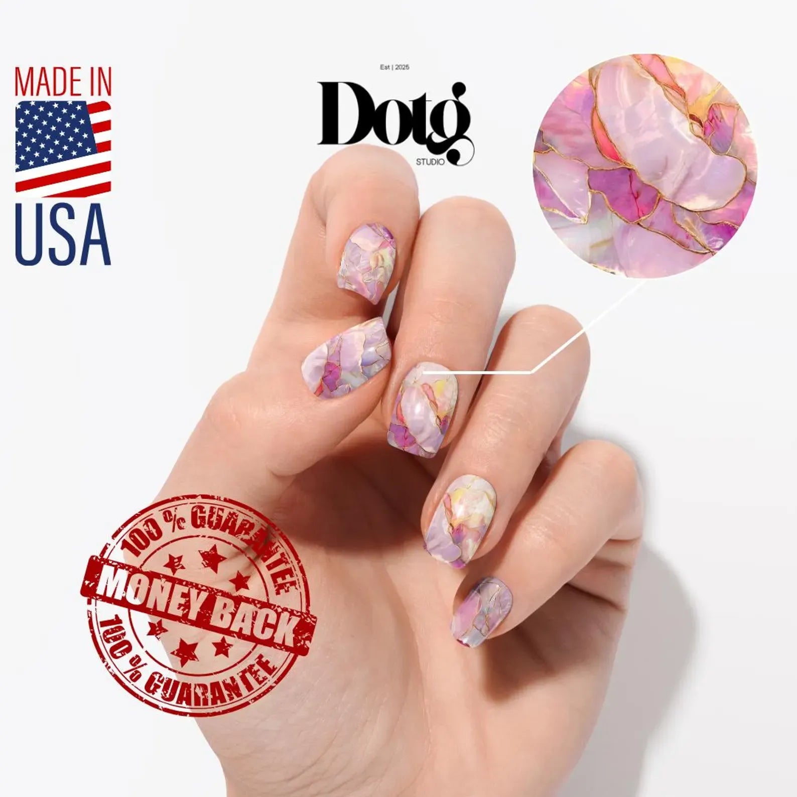 • An ethereal dance of pink quartz, soft violet, and creamy blush outlined in luminous golden threads — these wraps glow with the elegance of stained glass and the softness of blooming petals.