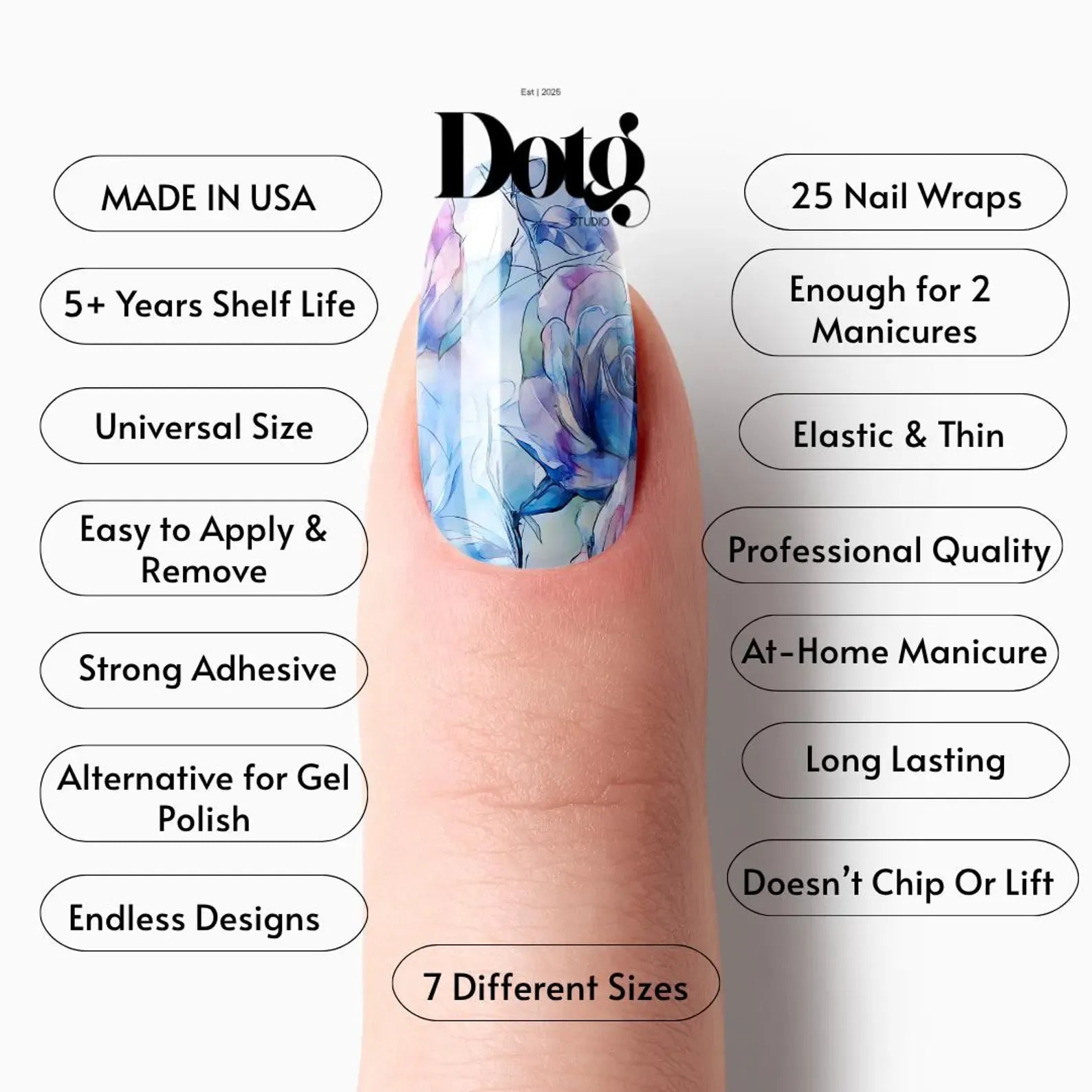 Transform your nails effortlessly with our nail wraps, the perfect alternative to gel polish. They fit every nail with their universal size. Their thin, elastic material ensures a comfortable, natural feel, while the strong adhesive makes application and removal quick and hassle-free. Enjoy long-lasting, stunning nails and endless design possibilities—upgrade your manicure routine today!